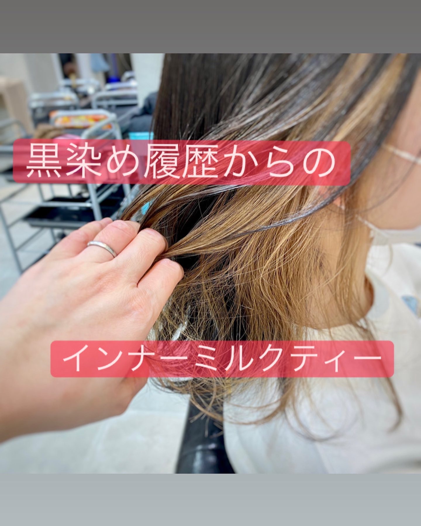 2022.04.09 インナーカラー いつもありがとうございます! シュルールの石川です!! 皆さんやったことはあるかな、、 黒染め履歴!! これがほんと色が残って悪さを発揮します!! ベージュや暖色寄りになりやすいので、要カウンセリングが必要になります(~_~) 先日の黒染めbefore↓↓↓ ここからブリーチを2回して色を入れると after↓↓↓ 人によって使う色も違うので一概に全ての黒染めがここまで上がるとは限らないです。。 プチ派手髪にインナーカラーいかがでしょうか??? 推し色入れるのもおすすめです(^^) 石川 ▼このページをシェア